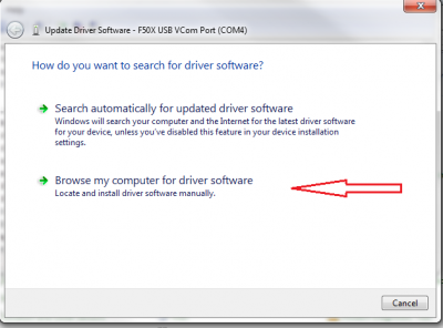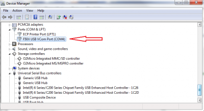 2)Right lick on "F50x USB VCom Port (COM4)" under Ports (COM & LPT)