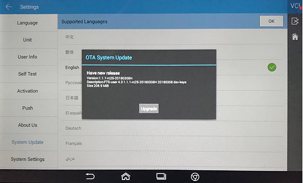 • Before checking for updates, ensure the VCI Box is connected via Bluetooth.