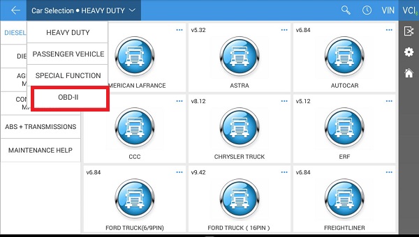 1. Select program (Diagnosis-->OBD II-->Diesel OBD)
