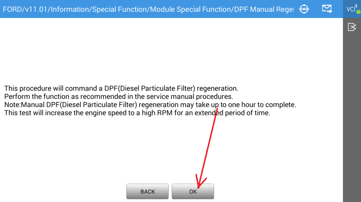 6) Select DPF Manual Regeration