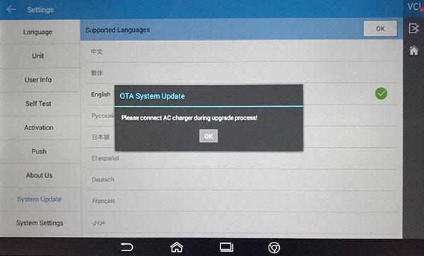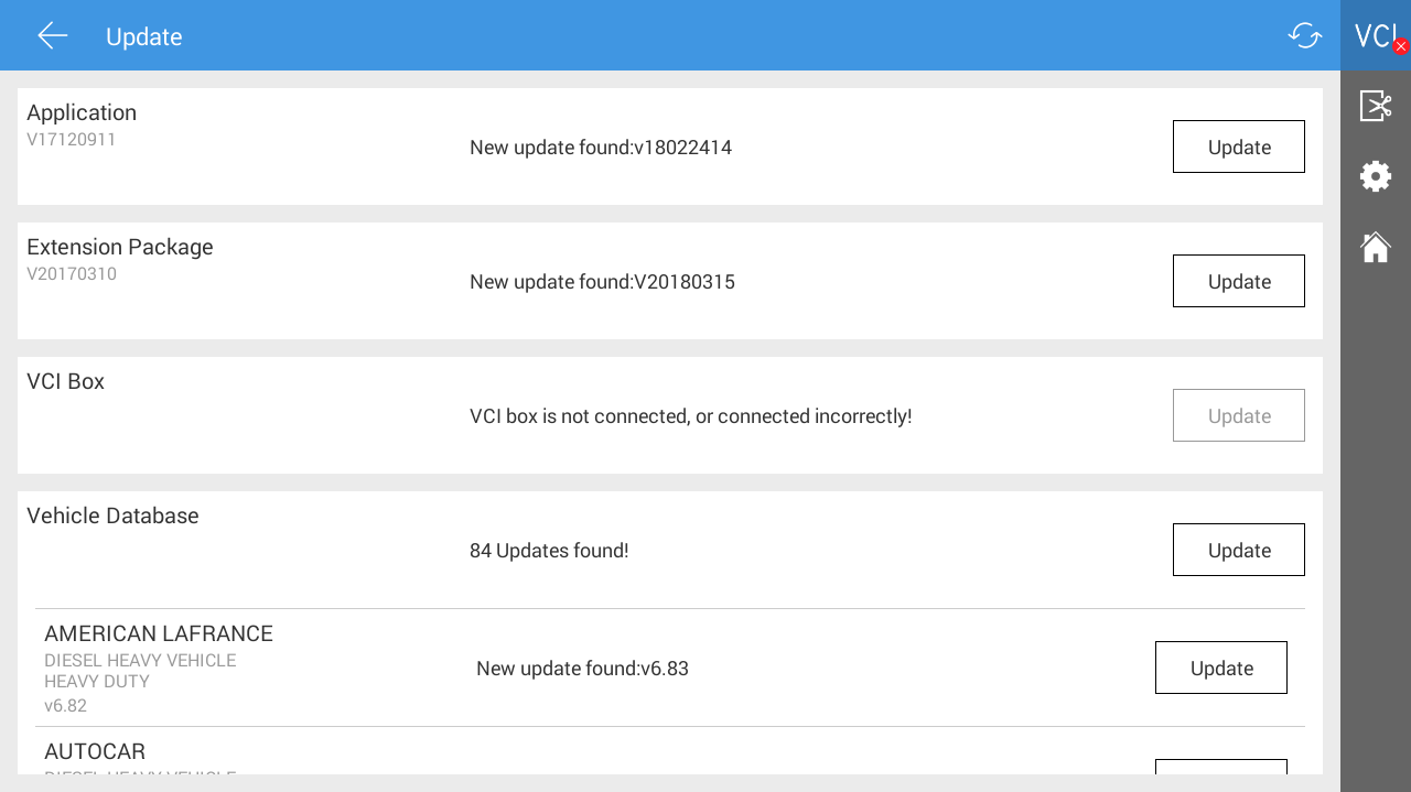 • Before checking for updates, ensure the VCI Box is connected via Bluetooth.