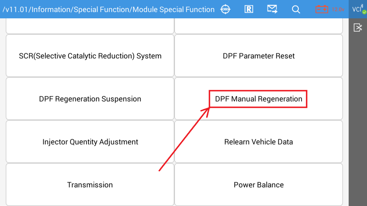 6) Select DPF Manual Regeration